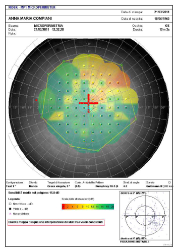 Dunque una valutazione preventiva dell’occhio con strumentazioni sofisticate come lo tomografia ad alta velocità (OCT Spectral domaine), l’elettroretinogramma e la microperimetria sono fondamentali per conoscere la qualità di queste cellule, individuare il momento migliore per attuare la terapia e dettare la prognosi della malattia e le possibilità terapeutiche dell’intervento.